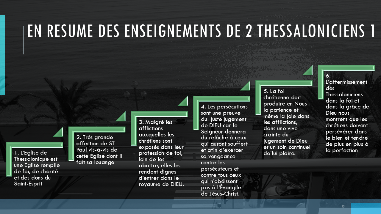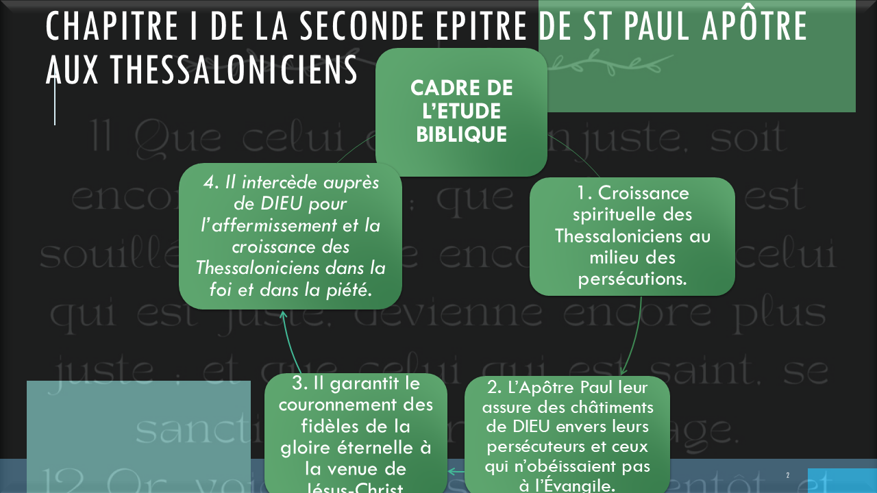 ETUDE BIBLIQUE DU CHAPITRE I DE LA 2ème EPITRE DE ST PAUL APÔTRE AUX THESSALONICIENS
