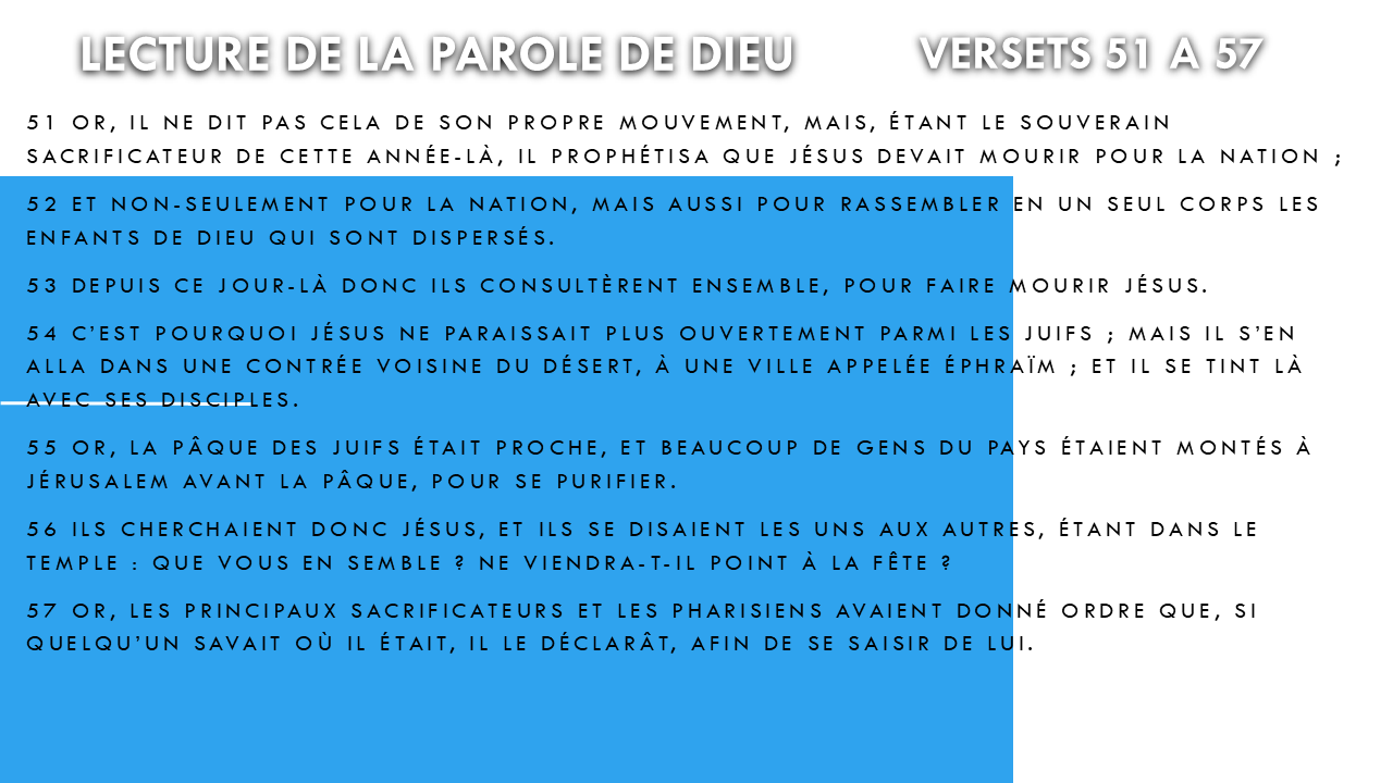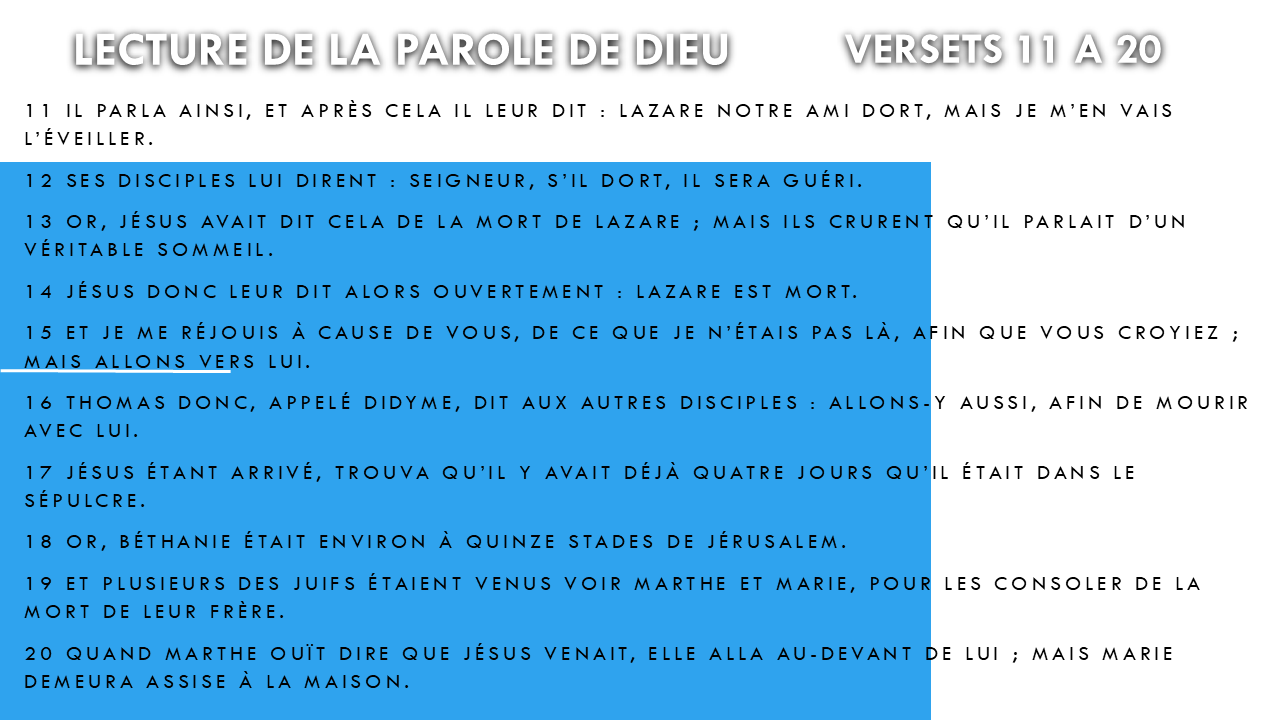 ETUDE BIBLIQUE DE L’EVANGILE DE ST JEAN CHAPITRE XI (11)