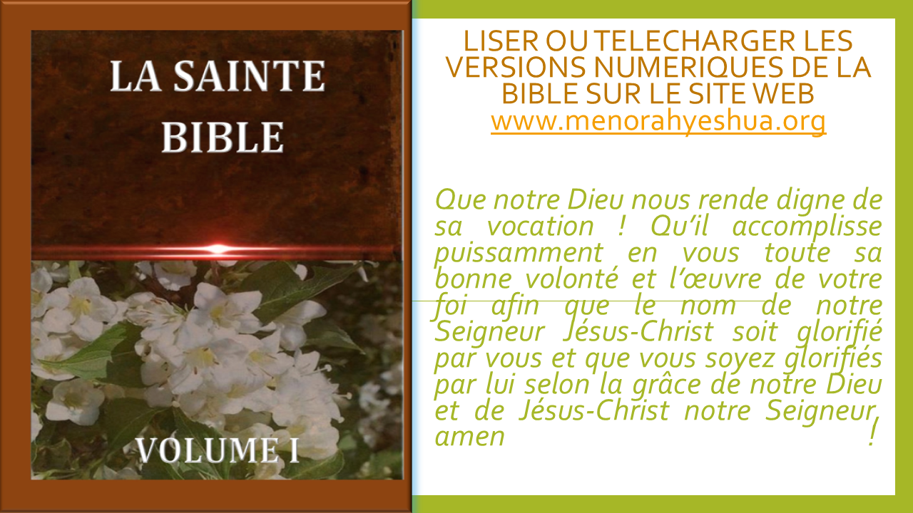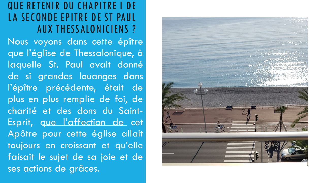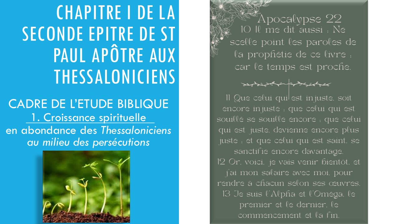 ETUDE BIBLIQUE DU CHAPITRE I DE LA 2ème EPITRE DE ST PAUL APÔTRE AUX THESSALONICIENS