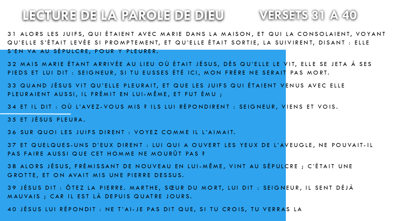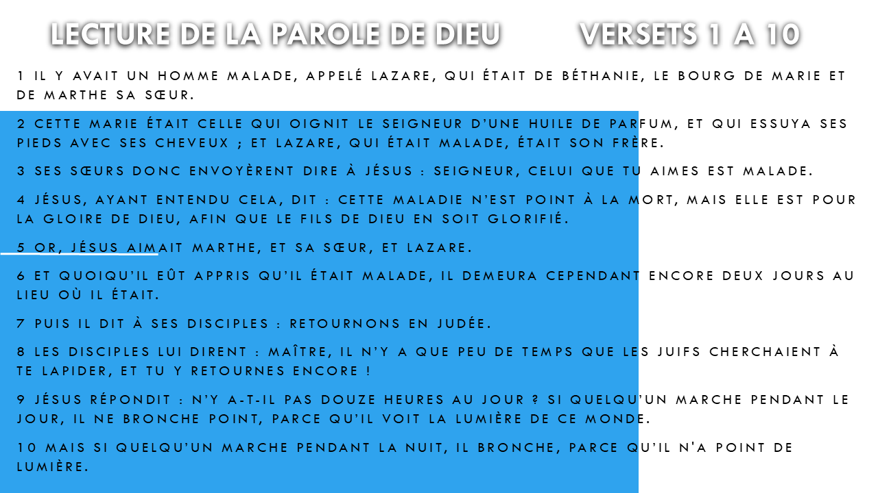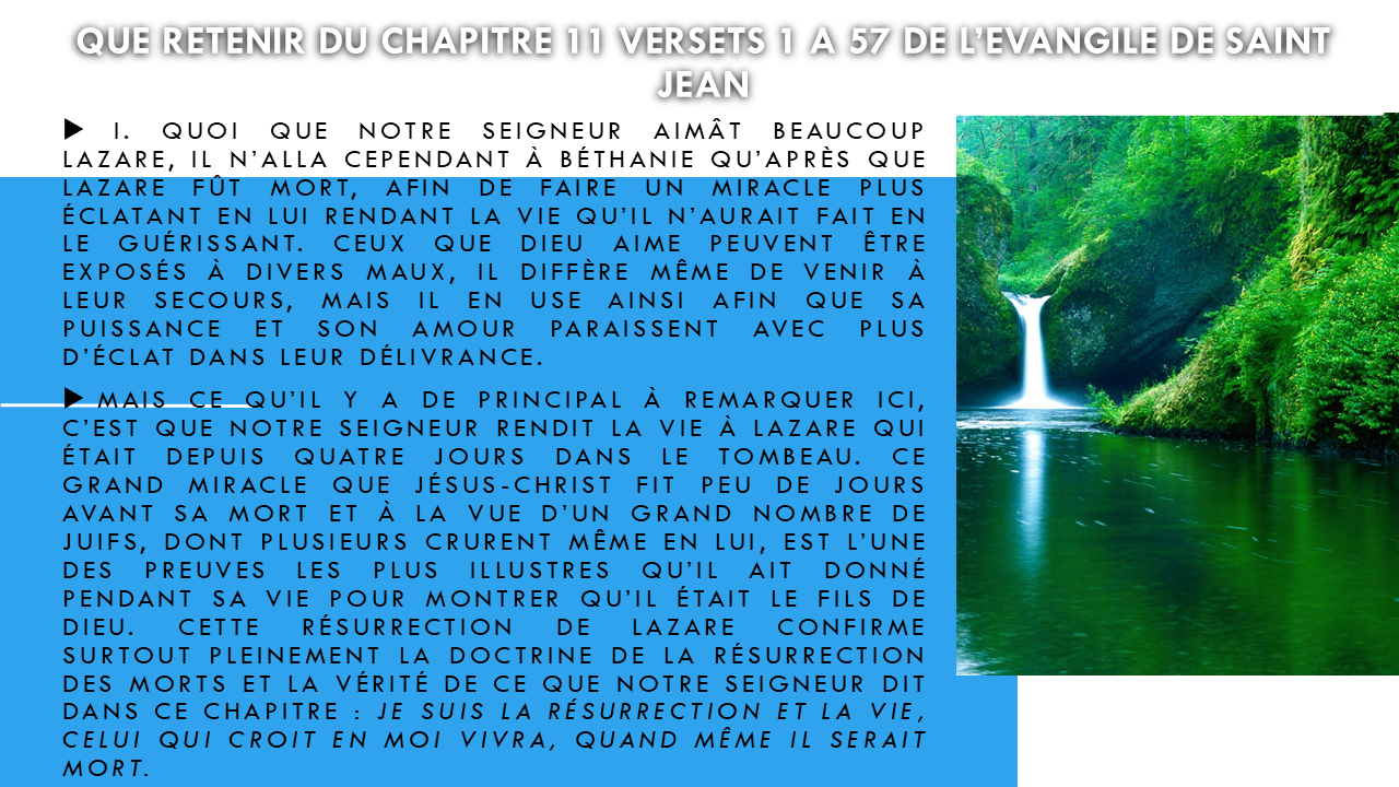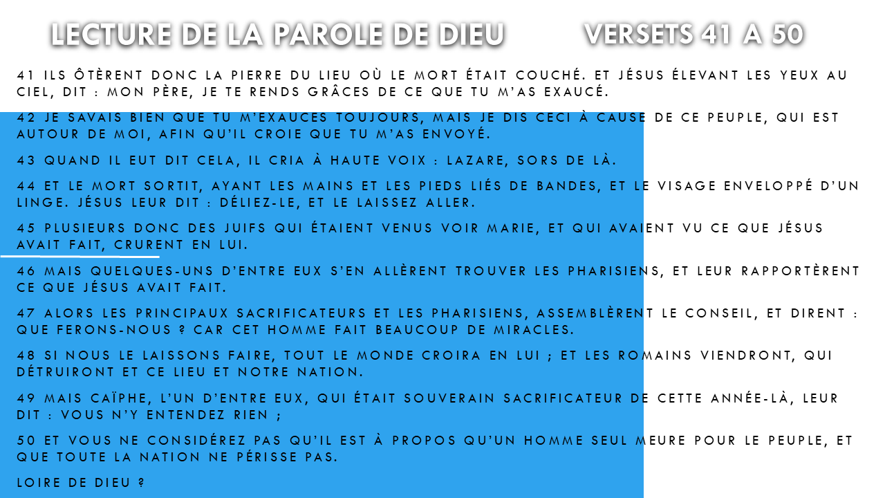 ETUDE BIBLIQUE DE L’EVANGILE DE ST JEAN CHAPITRE XI (11)